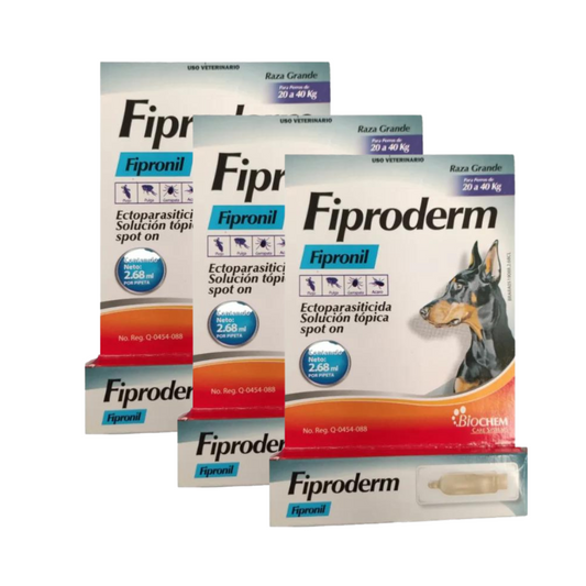 kit 3 pipetas fiproderm raza grandes 20-40 kilos