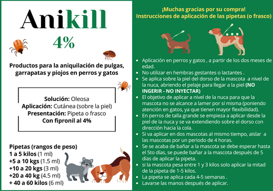 2 Frascos 50ml de aceite antipulgas fipronil anikill perros y gatos