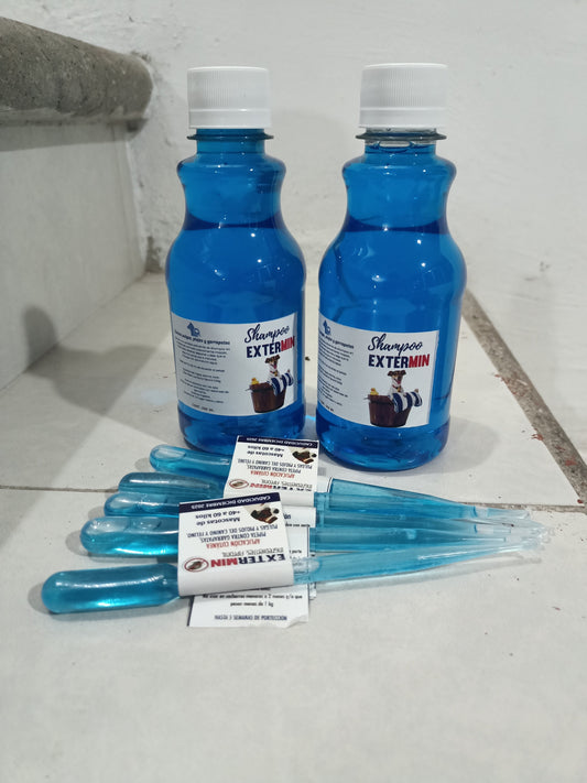 1 shampoo y 100 pipetas antipulgas extermin